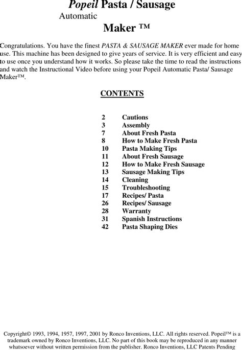 Read Pdf Manual Popeil Pasta Machine PDF